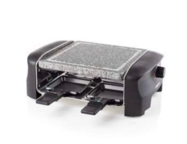 Contenido: Parrilla Stone Grill Party Raclette, 4 sartenes para raclette, instrucciones.