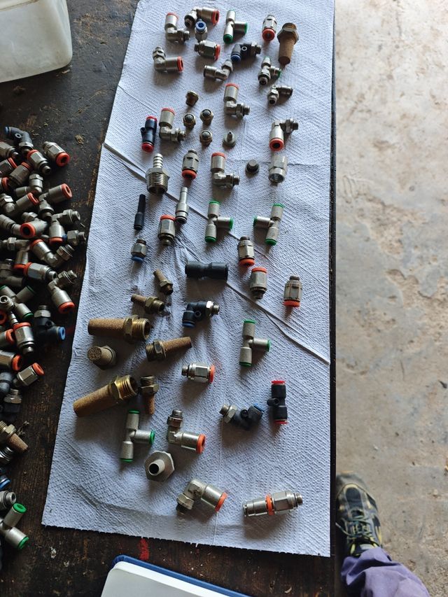 Detalles del productoLote de racores y conectores neumáticos de diferentes tipos, incluyendo conectores en T.