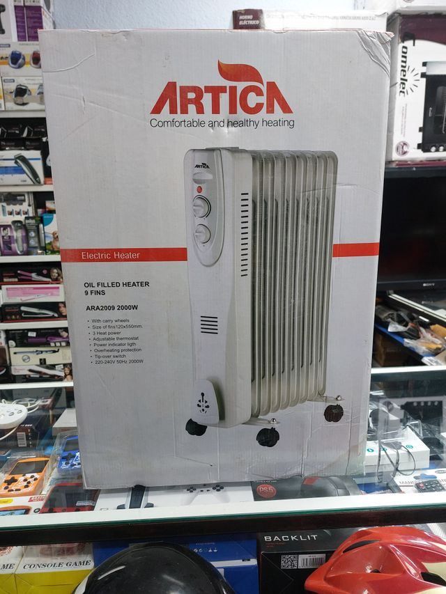 Detalles del productoRadiador de aceite, potencia 2000W, 9 elementos, 3 niveles potencia termostato regulable.