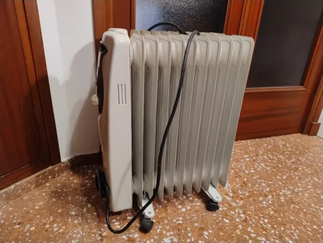 Detalles del productoRadiador de aceite en color blanco, perfecto para calentar estancias.