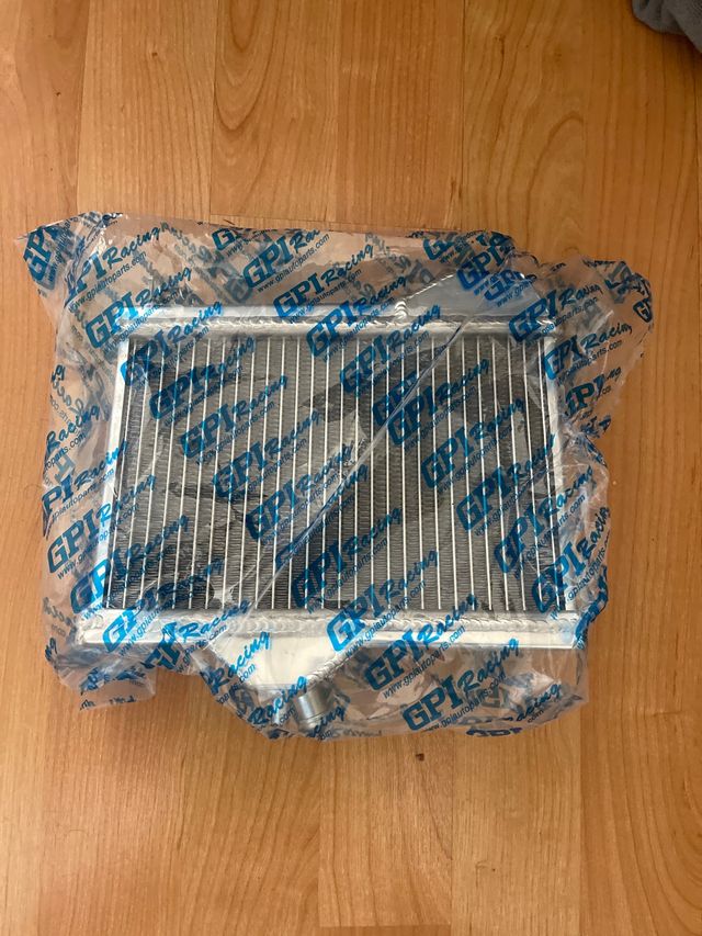 Radiador para Yamaha RD 350, nuevo y en su embalaje original. - Fabricado en aluminio. - Diseño de alto rendimiento. - Marca GPI Racing.