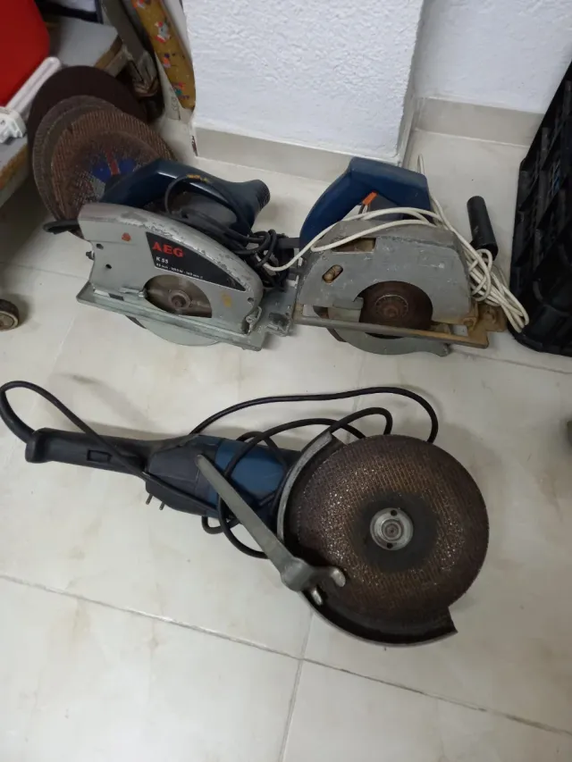 Se venden dos herramientas eléctricas, una radial AEG y una amoladora. - Radial AEG con disco. - Amoladora con disco de corte.