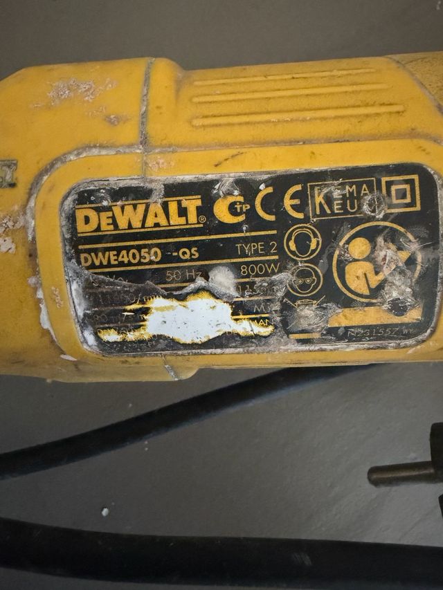 Radial DeWalt DWE4050-QS. - Potencia: 800W. - Voltaje: 50 Hz. - Tipo 2.