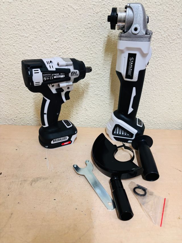 Se vende radial a batería y pistola de impacto a batería. Incluye dos baterías y cargado así como, accesorios para radial y maletín.