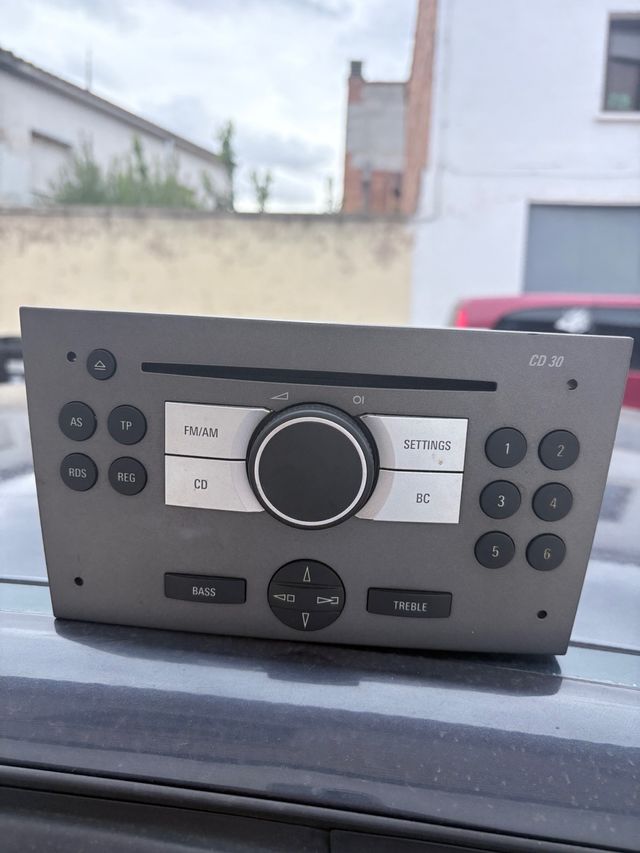 Radio CD 30 original para Opel. - Modelo CD 30. - Botones: AS, TP, RDS, REG, FM/AM, CD, SETTINGS, BC. - Control de BASS y TREBLE. - Teclado numérico 1-6.