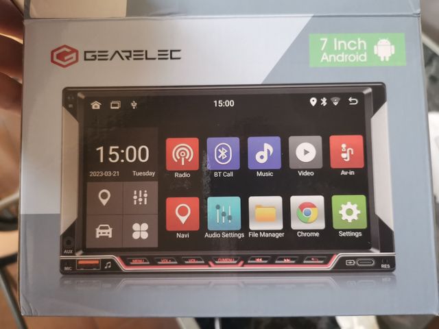 Detalles del productoPantalla Android para coche de la marca Gearelec. Incluye radio, Bluetooth, reproductor de música y vídeo. Dispone de navegador GPS y conexión a internet. - Pantalla táctil de 7 pulgadas. - Sistema operativo Android. - Conectividad Bluetooth. - Reproductor multimedia. - Navegación GPS. - Conexión a internet.