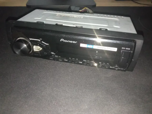 Detalles del productoRadio Pioneer para coche, modelo MVH-180UB, funciona perfectamente, únicamente tiene algun rasguño en el marco de plástico que se ocasionó a la hora de retirarlo, se vende por cambio a pantalla multimedia en mi vehículo actual.
