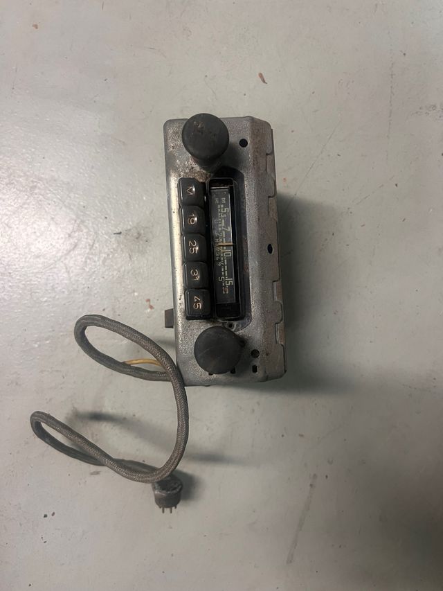 Radio de coche antigua, ideal para coleccionistas o proyectos de restauración. - Diseño clásico. - Botones de ajuste y sintonización. - Cableado incluido.