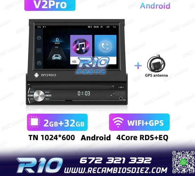 Detalles del productoMóvel: 672 321 332 - Referencia: MUL010233. RADIO GPS ANDROID 1DIN TACTIL GPS Caracteristicas: Navegación inteligente de pantalla grande HD 1,7 P de 1080 pulgadas, pantalla táctil capacitiva plegable, respuesta instantánea, no se atasca Soporte Android/ Iphone Mirror Link: IOS unidireccional: iOS admite la proyección unidireccional del teléfono móvil Android bidireccional: Android admite la conexión bidireccional del teléfono móvil Navegación GPS: admite muchos tipos de aplicaciones de navegación como el Mapa de Baidu, el mapa de Gaode, el mapa de Careland, el mapa sin conexión