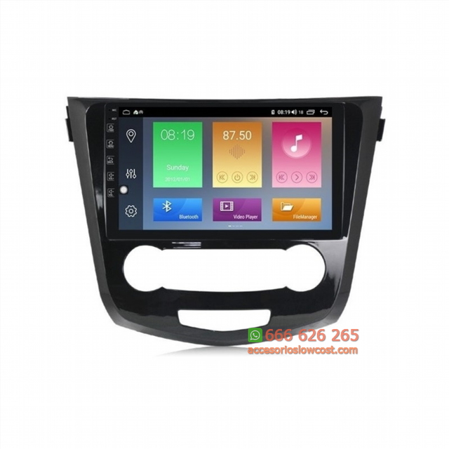 Detalles del productoREF: AL001059 RADIO NAVEGADOR DVD GPS 9” TÁCTIL 2DIN PARA NISSAN Nissan Qashqai J11 Nissan X trail T32 2014 - 2017 Características generales: Sistema operativo Android 11.0 Pantalla táctil capacitiva de 9 pulgadas. Resolución de pantalla: 1024x600, Full HD (1280P) con tecnología IPS. Procesador: CPU de cuatro núcleos de 1,2 GHz. Dimensiones del producto: 240 x 228 x 124 mm (formato 2DIN). Memoria: 2 GB de RAM DDR3 y 16 GB de ROM (memoria interna). Reproductor de DVD/CD. Reproduce múltiples formatos: MP3, MP2, WMA, WAV, ACC, MP4, AVI, FLV, 3GP, DAT, DIVX, MPEG, SVCD, VCD, XVID, JPEG. Puerto USB y SD hasta 64 GB de memoria