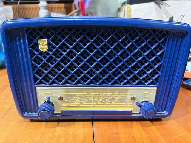 Detalles del productoRadio antigua de la marca Phillips, con diseño clásico y acabados en azul.