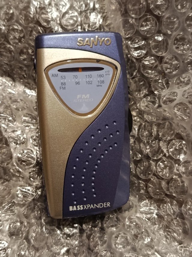 Radio portátil Sanyo con diseño moderno y compacto. Ideal para llevar a cualquier parte.