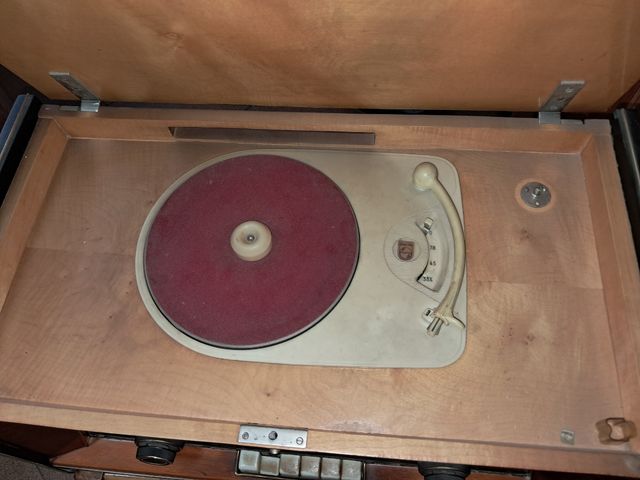 Detalles del productoUn clásico radio tocadiscos de la marca Philips, perfecto para los amantes de lo antiguo