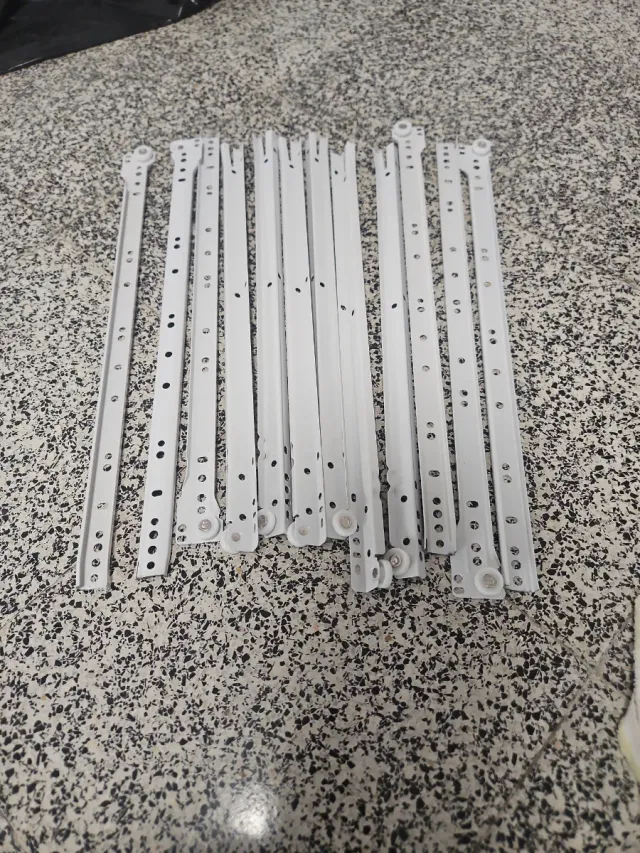 Conjunto de raíles para cajones, diseñados para un deslizamiento suave y sin sistema de freno. 48 cm. - Color blanco. - Fabricados en metal.