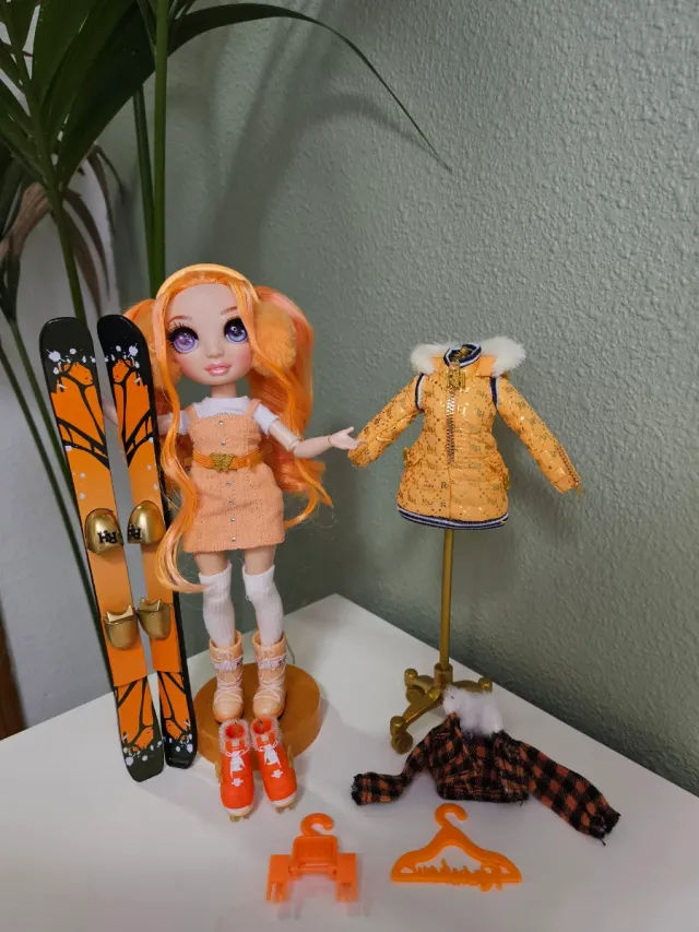 Detalles del productoPreciosa muñeca rainbow high color naranja,Poppy Rowan, colección esqui.Solo ha estado expuesta y se vende igual y con los accesorios de las fotos exepto el manequi que es para exibir mejor la ropita. Lleva el ojito un poco descolorido. Si se necesita más fotos o información con mucho gusto atiendo.Tengo más muñecas en mi perfil y hago descuento por lotes.