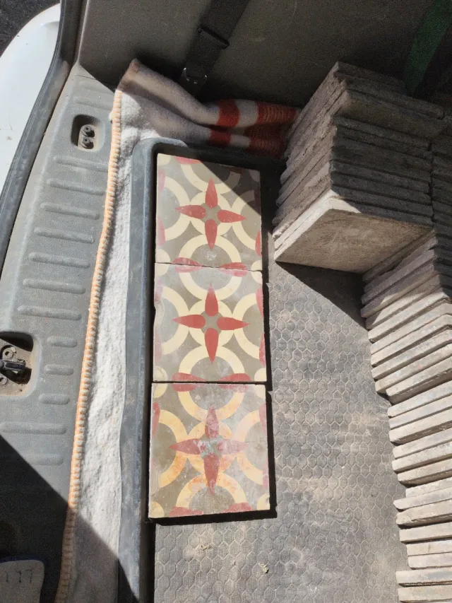 15 Rajoles hidràuliques desgastades i escantonades (algunes més, d'altres menys)