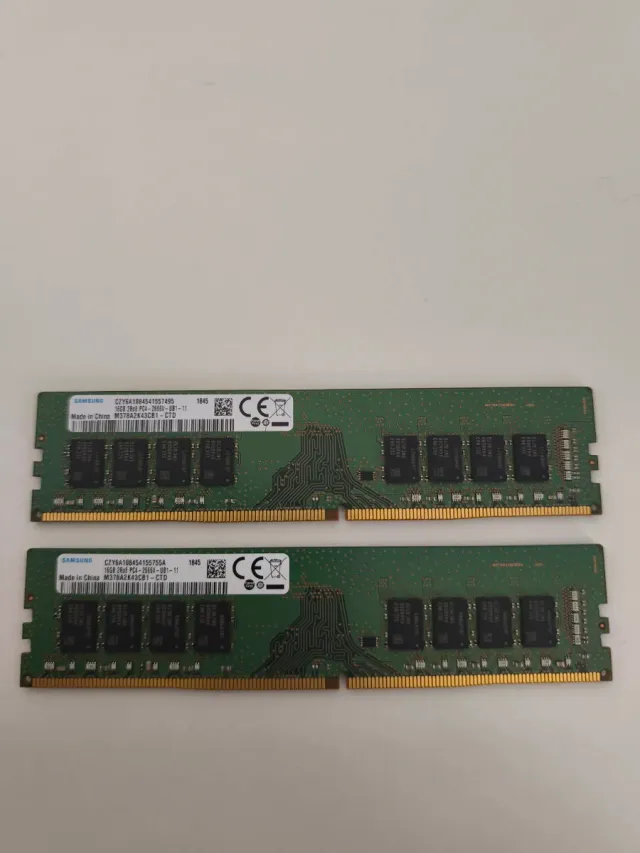 Dos módulos de memoria RAM DDR4 de Samsung. - Capacidad: 16GB cada uno (total 32GB) - Tipo: DDR4 -Frecuencia: 2666mhz