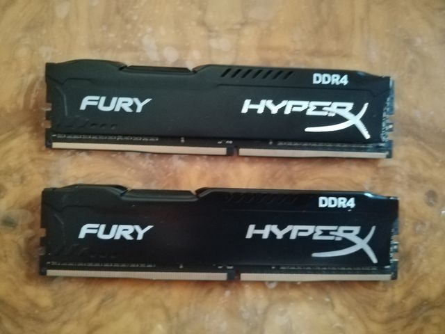 Par de módulos de memoria RAM HyperX Fury. Son dos módulos de 8 GB cada uno, para un total de 16 GB. Están en perfecto estado y listos para usar. - DDR4 - 2 x 8 GB - Diseño impecable