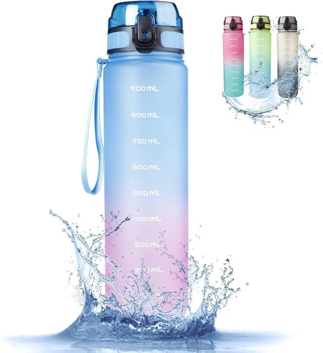 Detalles del productoRaMokey Botella de Agua Deportiva 1l, Botella Agua sin BPA Tritan Reutilizable, para , Deporte, Escuela, al Aire Libre, Yoga, fitness, correr.