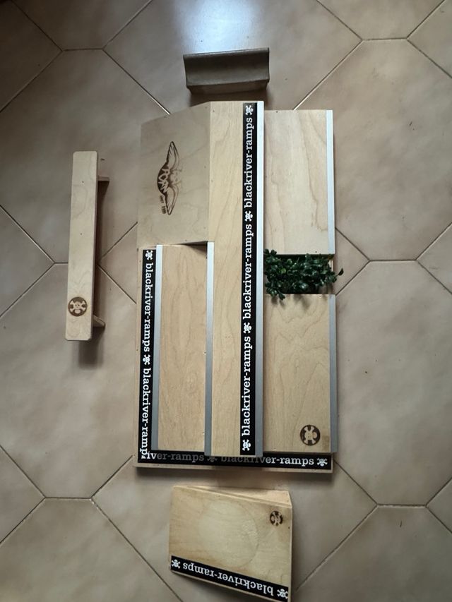 Set de rampas para skate. - Fabricadas en madera. - Borde metálico. - Diseño con logo Blackriver-ramps. - Se hacen envíos - Precio negociable