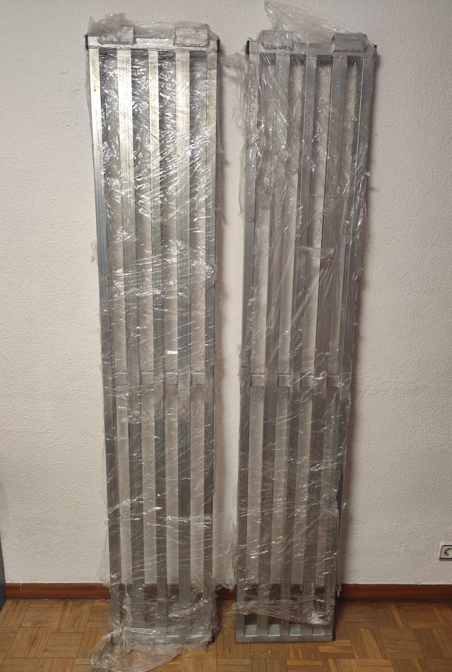 Detalles del producto2 Dos rampas de carga con enganche para remolque. También valen para furgoneta y camión. Miden 197cm de largo x 35cm de ancho.