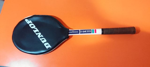 Raqueta de madera antigua Dunlop DLINE303 con mango cuerdas y funda en perfecto estado