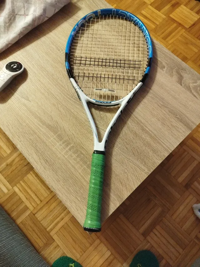Raqueta de tenis Babolat en buen estado, lista para jugar. Incluye su funda original. - Diseño blanco y azul. -overgrip nuevo