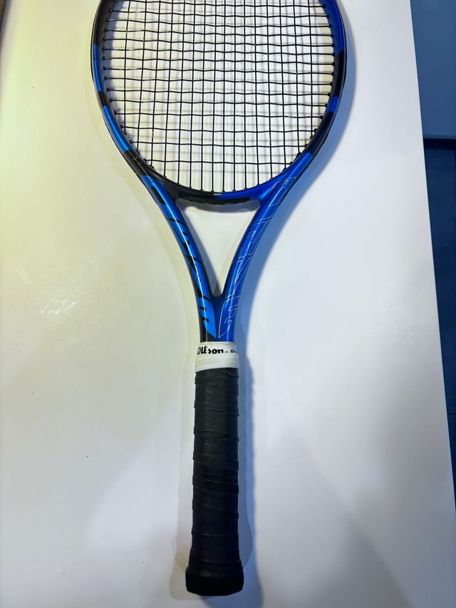 Raqueta de tenis Babolat Pure Lite. - Color azul y negro. - Empuñadura negra. - Cordaje negro. -Grip 3