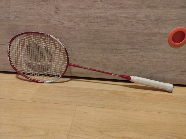 Raqueta de bádminton Artengo en buen estado. Ideal para principiantes o jugadores ocasionales. - Marca: Artengo - Color: Rojo y blanco - Diseño elegante