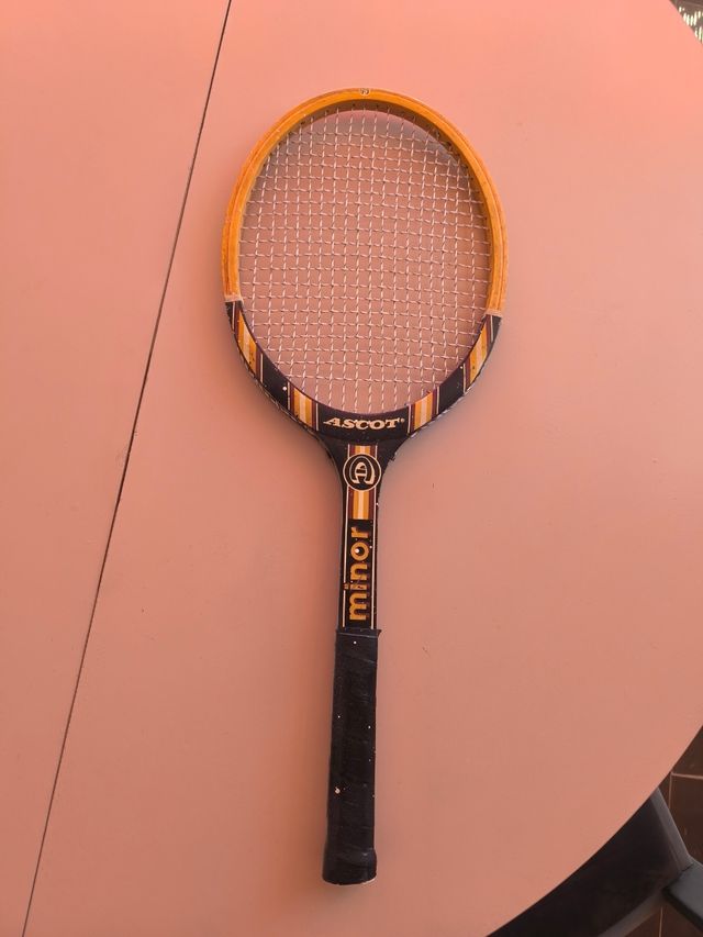 Detalles del productoRaqueta de tenis de madera de la marca Ascot, modelo Minor. Ideal para coleccionistas o para jugar de forma recreativa.