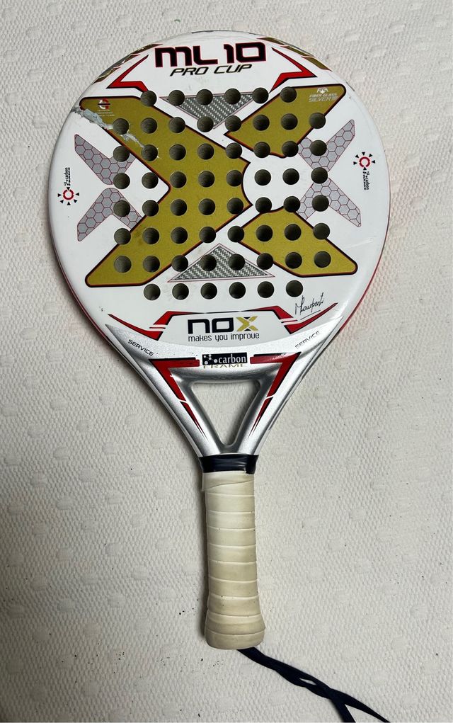 Detalles del productoRaqueta de pádel NOX ML10 Pro Cup con diseño llamativo.