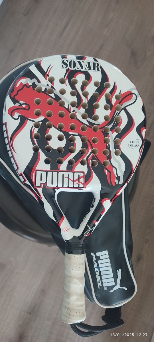 Detalles del productoRaqueta de pádel de carbono PUMA de color negra, roja y blanca a estrenar incluye estuche original