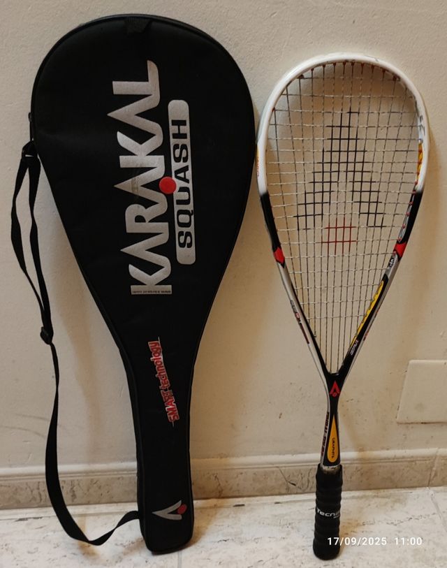 Detalles del productoRaqueta de squash Karakal en buen estado, lista para jugar. Incluye su funda protectora.