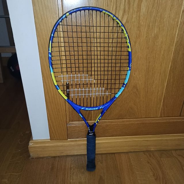 Detalles del productoRaqueta de tenis para niños marca babolat, su tamaño es de 23 pulgadas. Para niños de 5 a 7 años ( según su talla). Cordaje en perfecto estado, el marco tiene rasguños del uso. Grip se pondrá nuevo en la venta. Con funda de transporte modo bandolera.