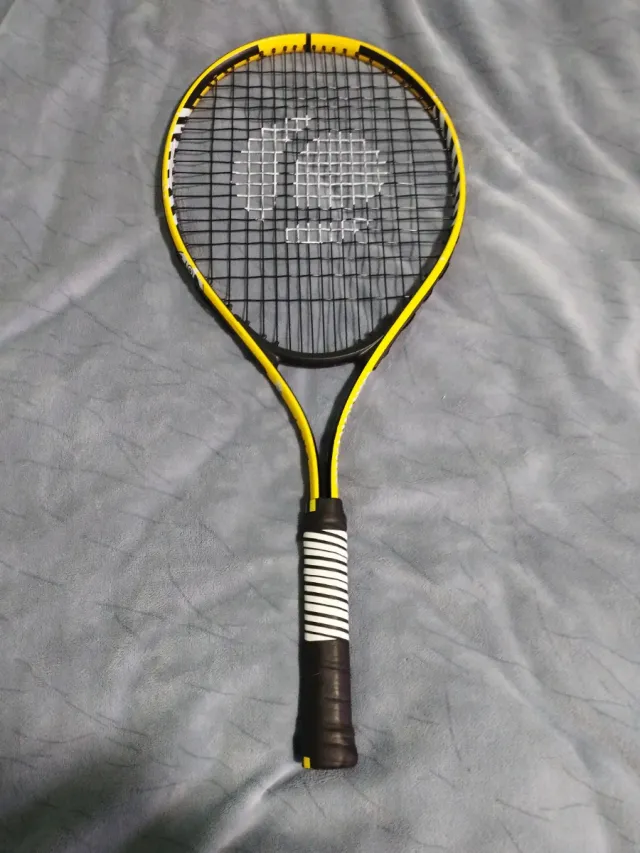 Raqueta de tenis en perfecto estado, sin usar. - Color amarillo vibrante. - Diseño moderno y ligero. - Empuñadura cómoda para un mejor agarre.