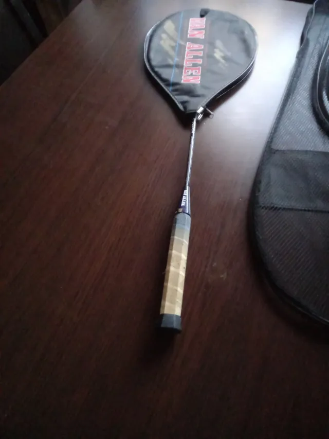 Raqueta de tenis de la marca Allen, en buen estado y con poco uso. - Funda protectora incluida. - Empuñadura con agarre de tela.