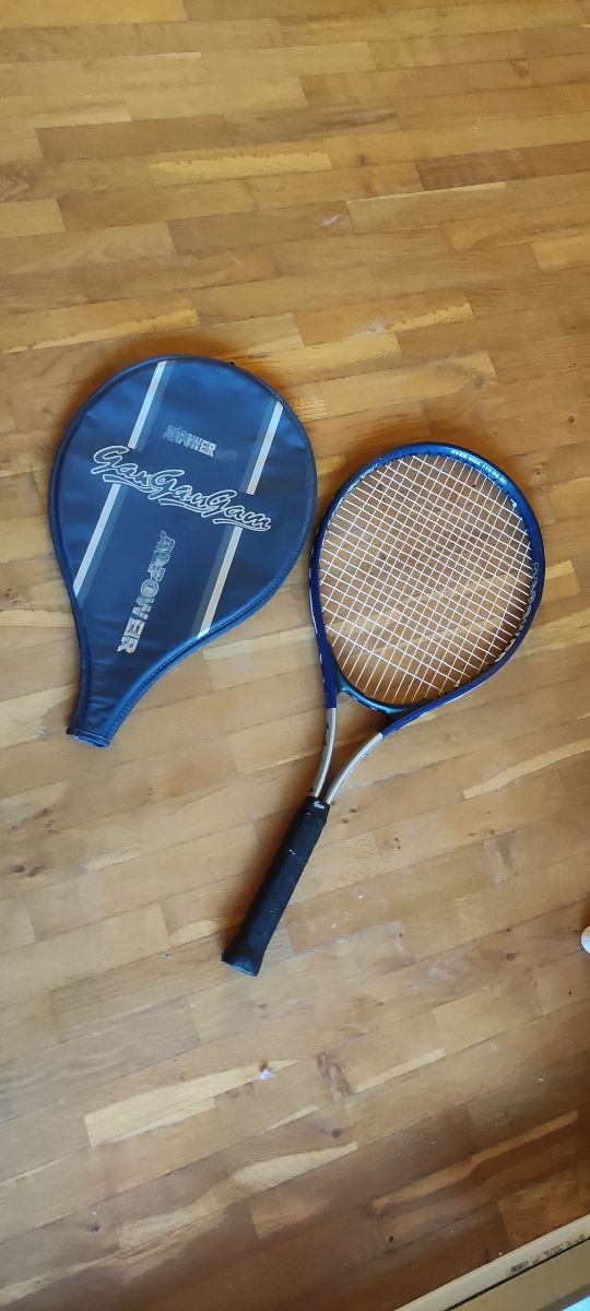 Raqueta de tenis Alpower en buen estado, junto con su funda.