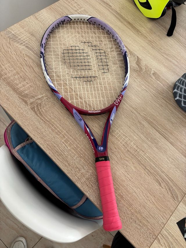 Raqueta de tenis Artengo para niñ@s pesa 230 g - Marco de grafito. - Empuñadura rosa. tiene algunas picadas, pero no muy grandes