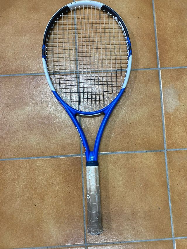 Raqueta de tenis de la marca Artengo. - Marco de color blanco y azul.