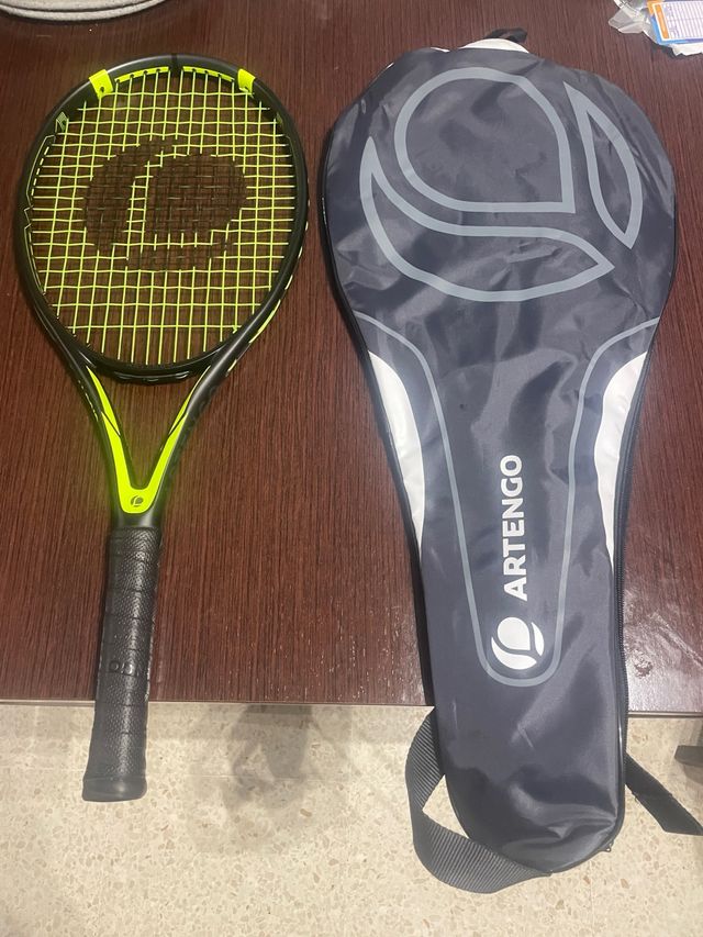 Raqueta de tenis Artengo en color negro y verde lima, con su funda protectora. - Diseño moderno. - Incluye funda de transporte.