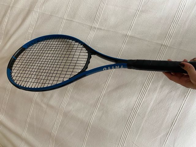Raqueta de tenis Artengo TR110 en color azul. - Marco de aluminio. - Cuerdas de nylon. - Empuñadura negra.
