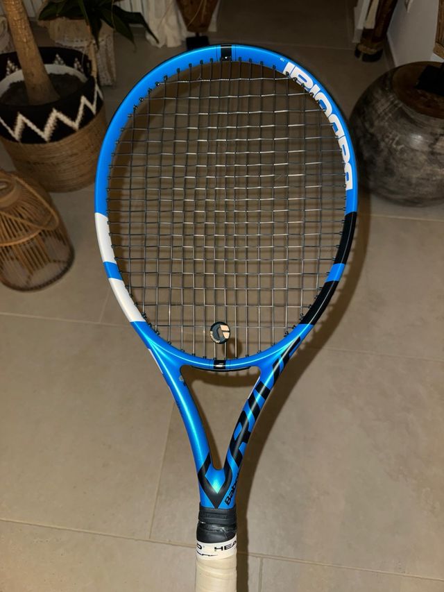 BABOLAT PURE DRIVE 285 g (16x19 CROSSES) Raqueta de tenis de color azul con detalles en blanco y negro. - Diseño deportivo. - Marca Babolat visible.