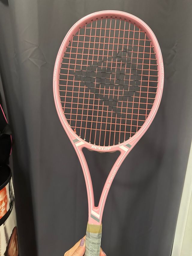 Detalles del productoRaqueta de tenis Dunlop Powerdrive en color rosa, ideal para coleccionistas o para iniciarse en el deporte.