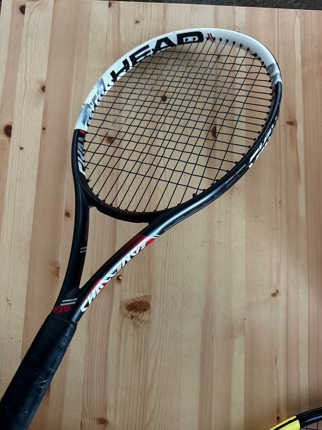 Raqueta de tenis Head Elite en color negro y blanco con detalles en rojo. - Marco de grafito. - Tamaño de cabeza: 100 sq. in. - Peso: 270 g. - Balance: 330 mm.