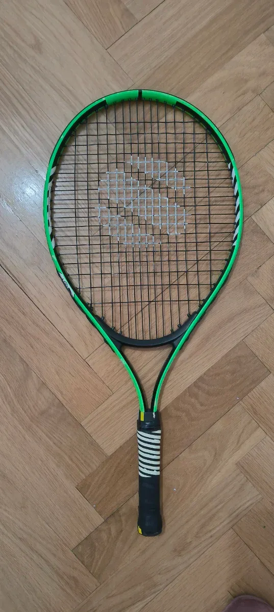 Raqueta de tenis para niños con un diseño llamativo en color verde. - Marco resistente. - Cuerdas tensadas. - Empuñadura cómoda.