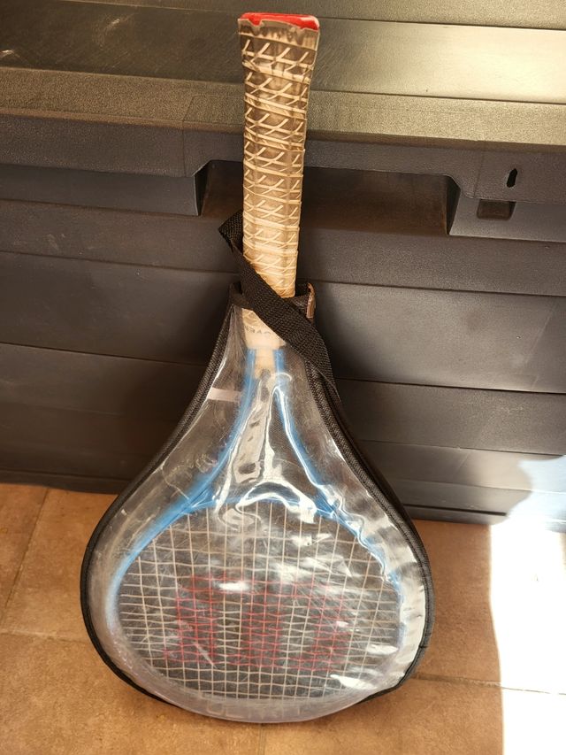 Raqueta Wilson talla 25, para niños de unos 10 años. Para jóvenes aprendices. Viene con la funda original. Hay que cambiar solo la empuñadura y a jugar.