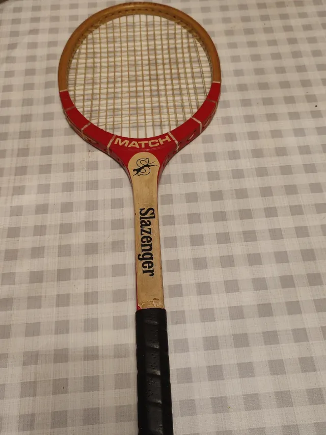 Raqueta de tenis vintage de madera, modelo MATCH de la marca Slazenger. - Marco de madera. - Cuerdas en buen estado. - Empuñadura negra.