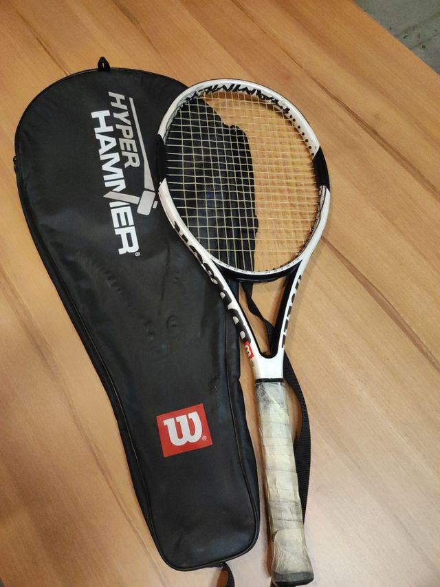 Detalles del productoRaqueta de tenis Wilson Hyper Hammer con funda.