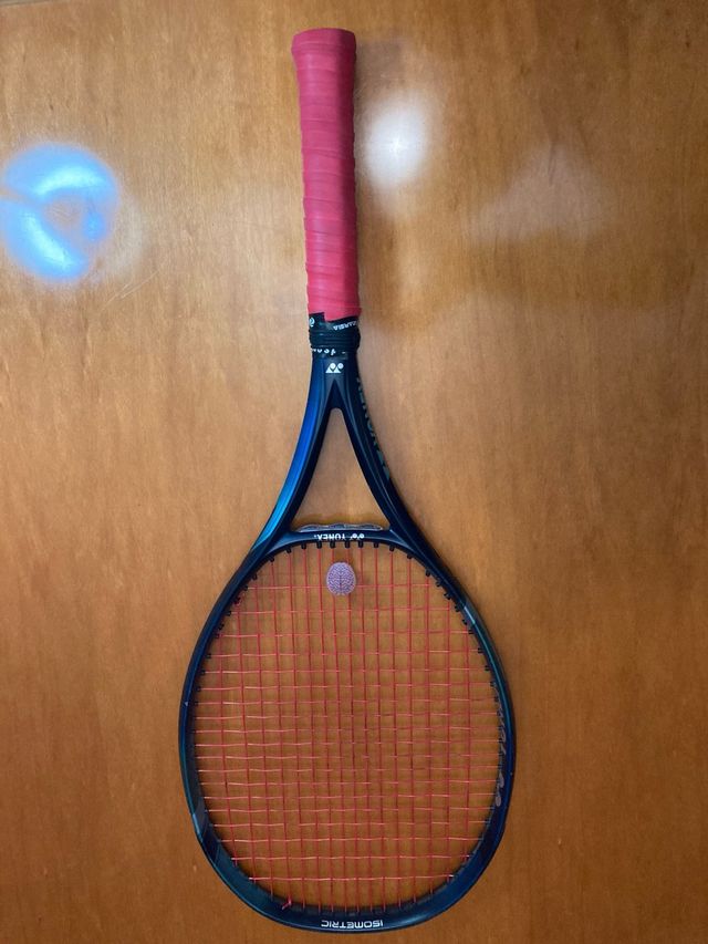 Detalles del productoRaqueta de tenis Yonex con tecnología ISOMETRIC.