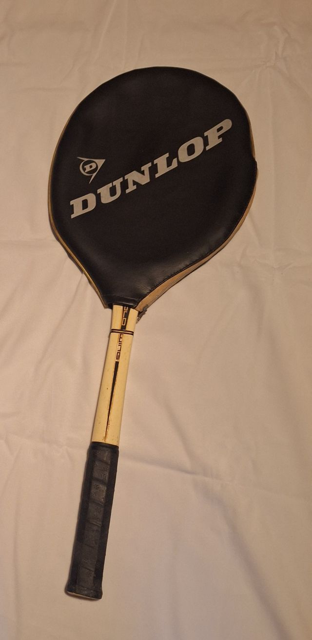 Detalles del productoEn el marco de la raqueta se encuentra la marca "Dunlop", auténtica señal de la manufactura inglesa. Además, se observan las inscripciones "GOLD" y "WING"